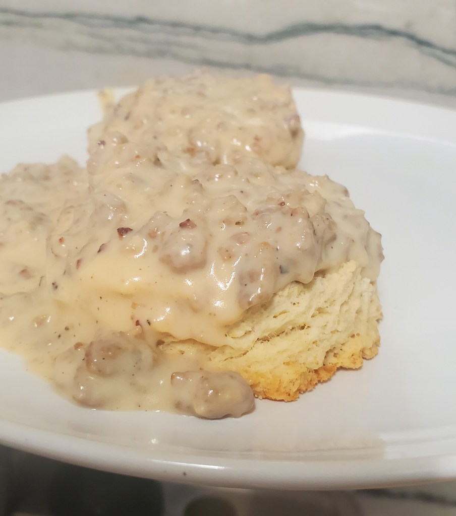 - To Plate: Break the biscuits in half and spoon the gravy over the top. Serve hot and enjoy!!!
