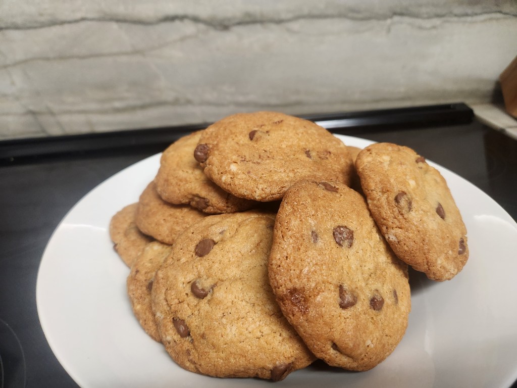 - Add the salt, baking soda and flour. Mix it all together and then add the chocolate chips.